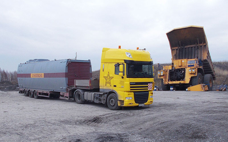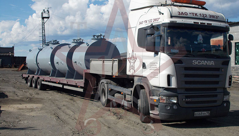 Транспортировка резервуаров и АЗС наземным транспортом – очень дорогостоящий и трудоемки процесс, связанный не только с обеспечением необходимого автотранспорта, способного произвести транспортировку многотонного изделия, но и в поиске профессионального водителя, способного довезти изделие до пункта назначения в целости и сохранности. Даже имея опытного водителя и подходящий автомобиль, транспортировка станет серьезной проблемой без надлежащего оформления всех документов. Подобные сложности могут заставить клиентов тратить огромное количество денег и времени для решения этих вопросов, именно поэтому наш завод берет все эти заботы на себя.